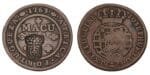 ANGOLA 2 macutas 1763 / Portuguese colony / Mary II / with countermark / VF