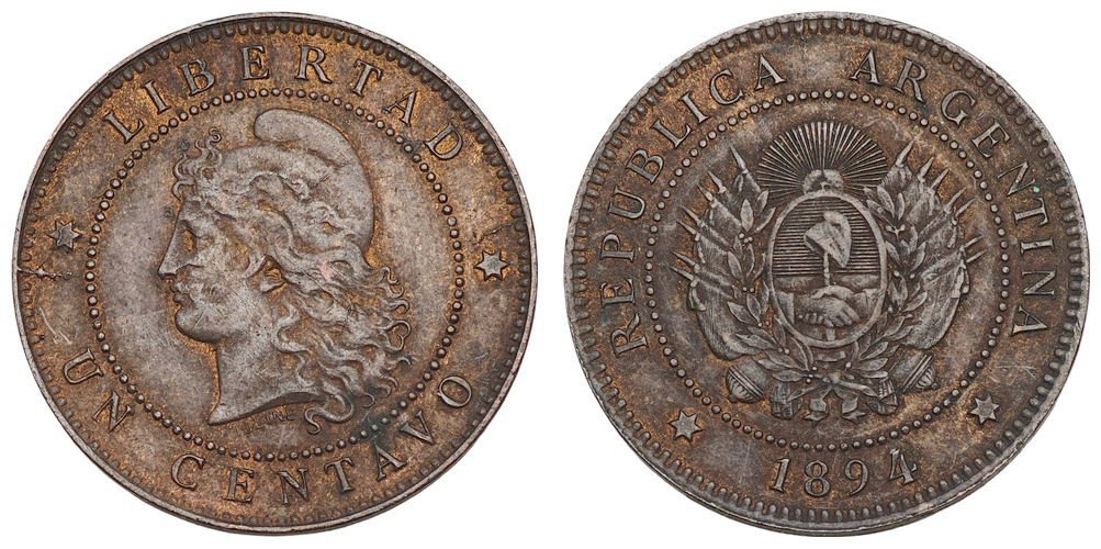 ARGENTINA 1 centavo 1894 VF