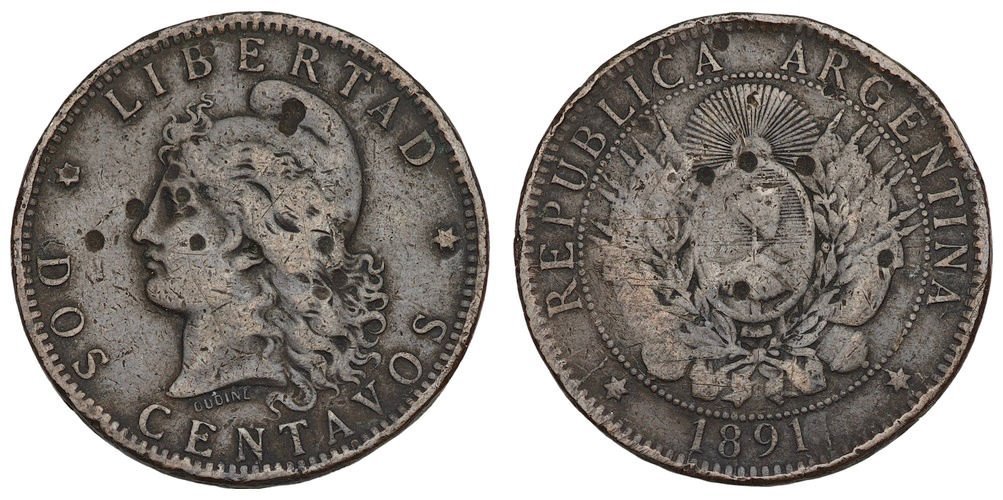 ARGENTINA 2 centavos 1891 F