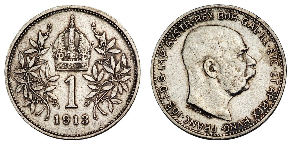 AUSTRIA 1 corona 1913 / Silver / VF