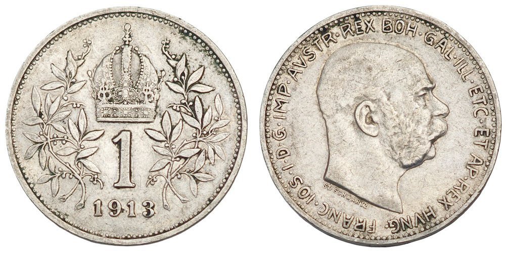 AUSTRIA 1 corona 1913 / Silver / VF