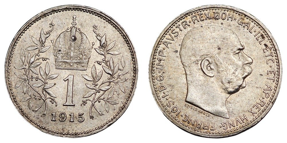 AUSTRIA 1 corona 1915 / Silver / VF+
