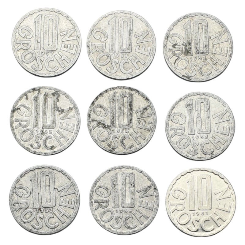 AUSTRIA 10 groschen / coins lot / 9 pcs.