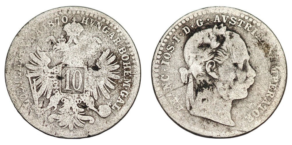 AUSTRIA 10 kreuzer 1870 / Silver / F