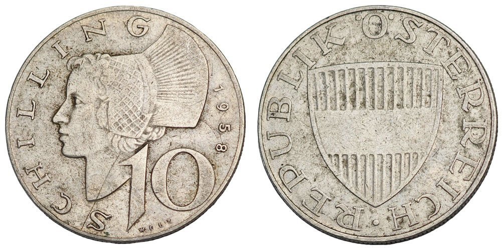 AUSTRIA 10 schilling 1958 / Silver / VF