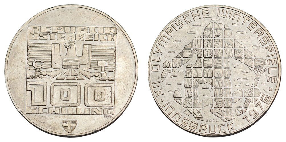 AUSTRIA 100 schilling 1976 / Innsbruck Winter Olympics / Silver / XF+