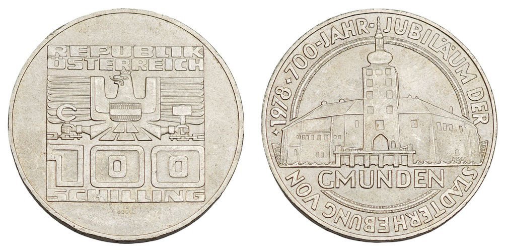 AUSTRIA 100 schilling 1978 / 700th Anniversary of Gmunden / Silver / UNC-