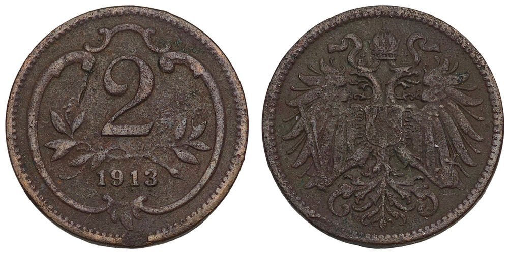 AUSTRIA 2 heller 1913 VF