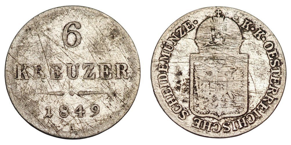 AUSTRIA 6 kreuzer 1849A / Silver / F