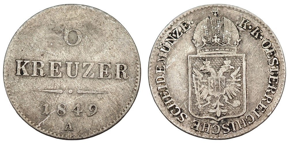AUSTRIA 6 kreuzer 1849A / Silver / VF-