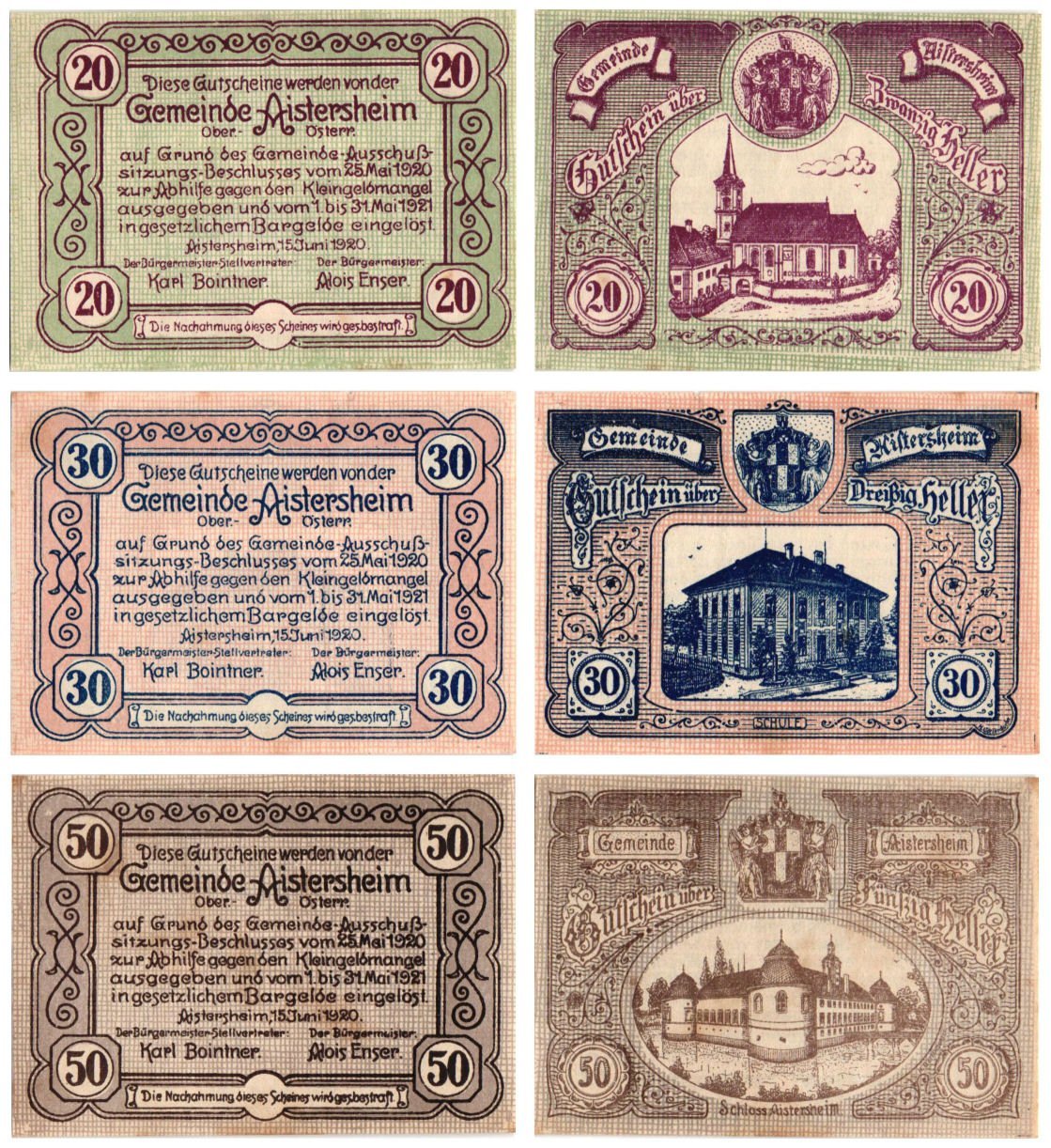 AUSTRIA Aistersheim 1920 local banknotes lot / Notgeld / 3 pcs. UNC