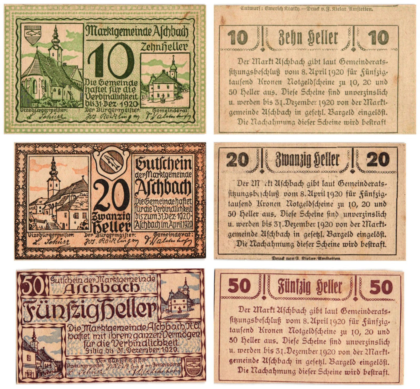AUSTRIA Aschbach 1920 local banknotes lot / Notgeld / 3 pcs. UNC-