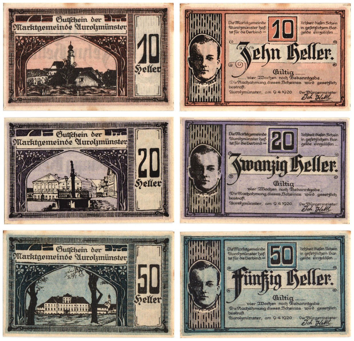 AUSTRIA Aurolzmünster 1920 local banknotes lot / Notgeld / 3 pcs. XF