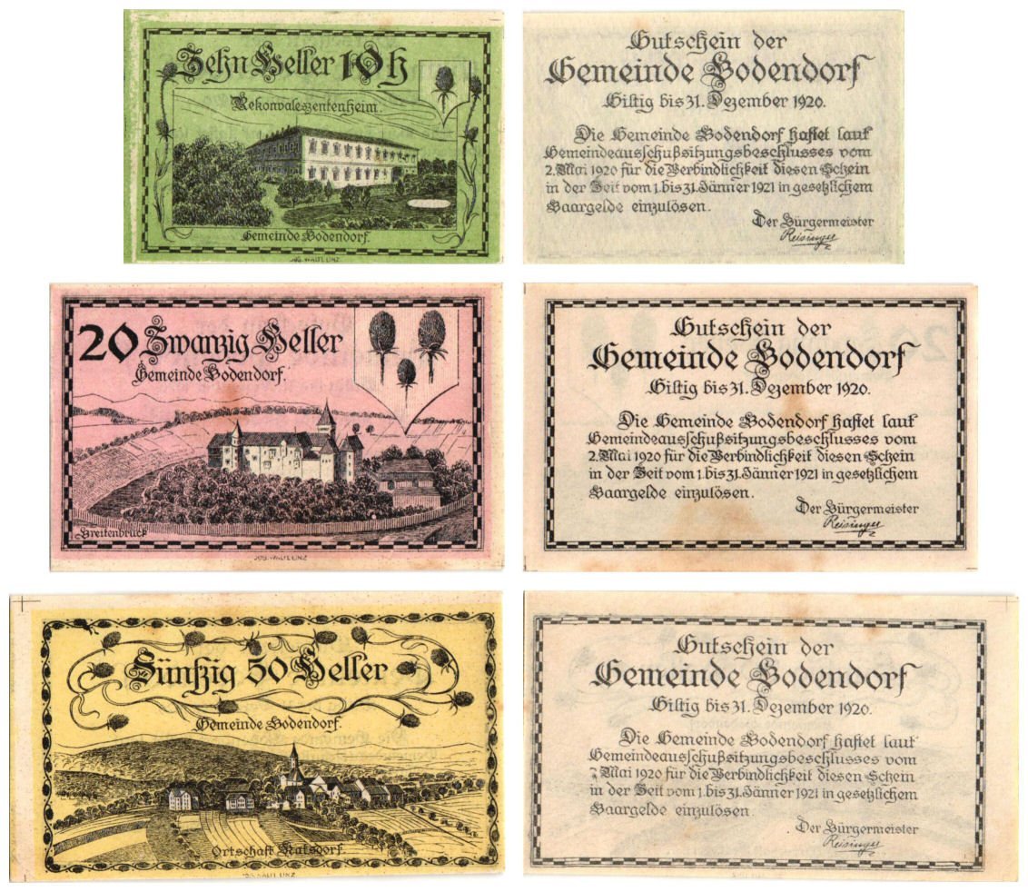 AUSTRIA Bodendorf 1920 local banknotes lot / Notgeld / 3 pcs. UNC