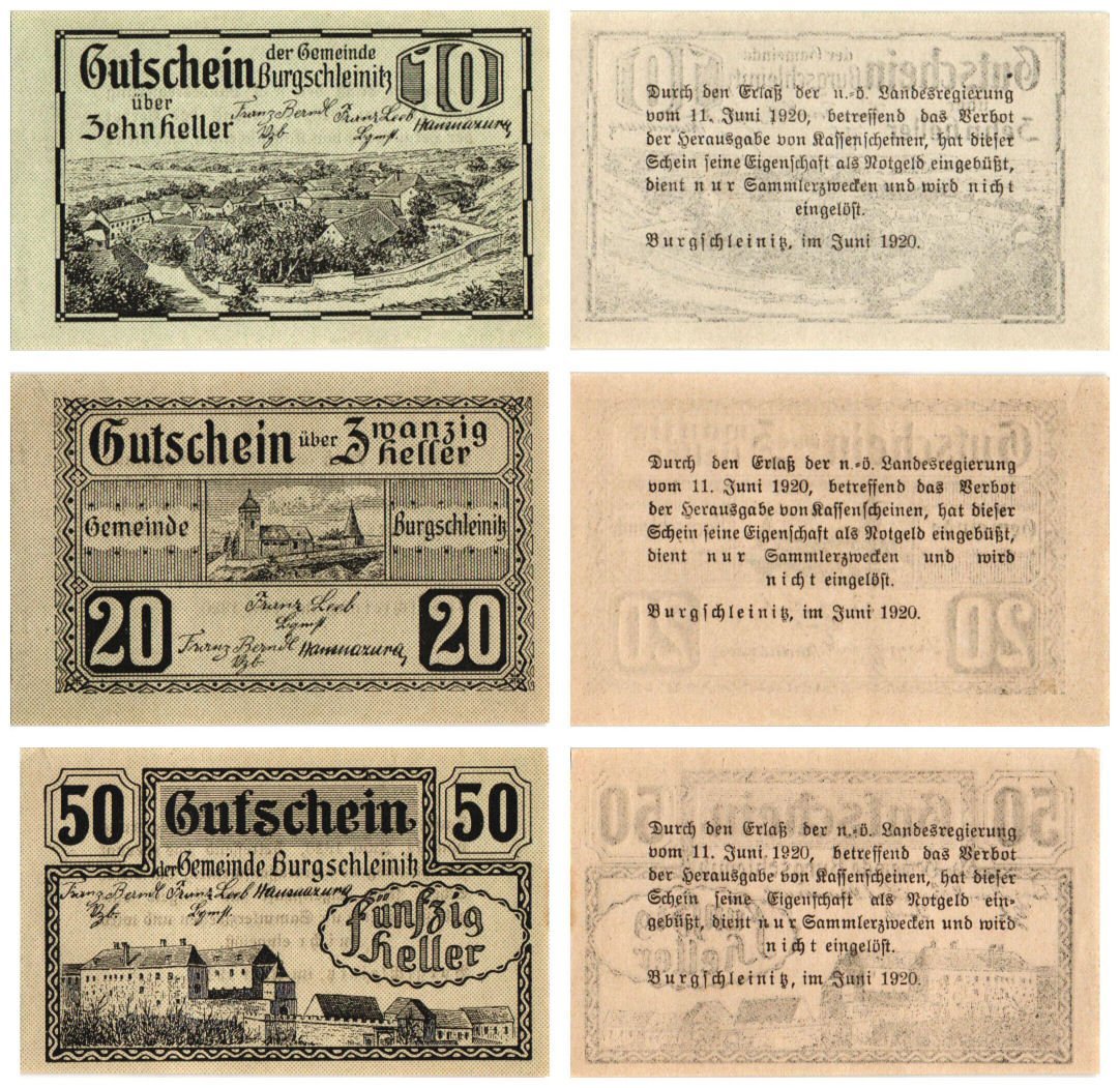 AUSTRIA Burgschleinitz 1920 local banknotes lot / Notgeld / 3 pcs. UNC