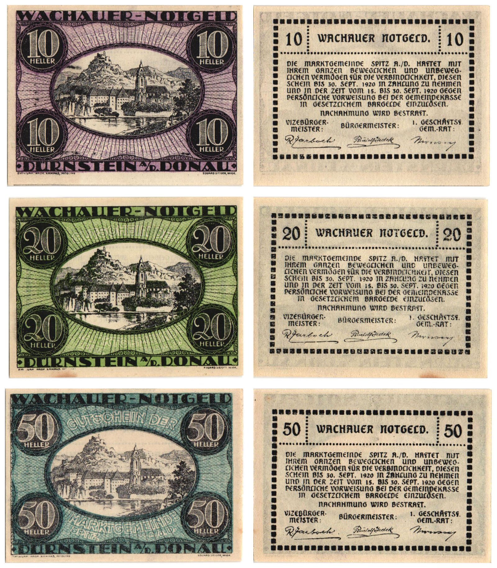 AUSTRIA Dürnstein 1920 local banknotes lot / Notgeld / 3 pcs. XF