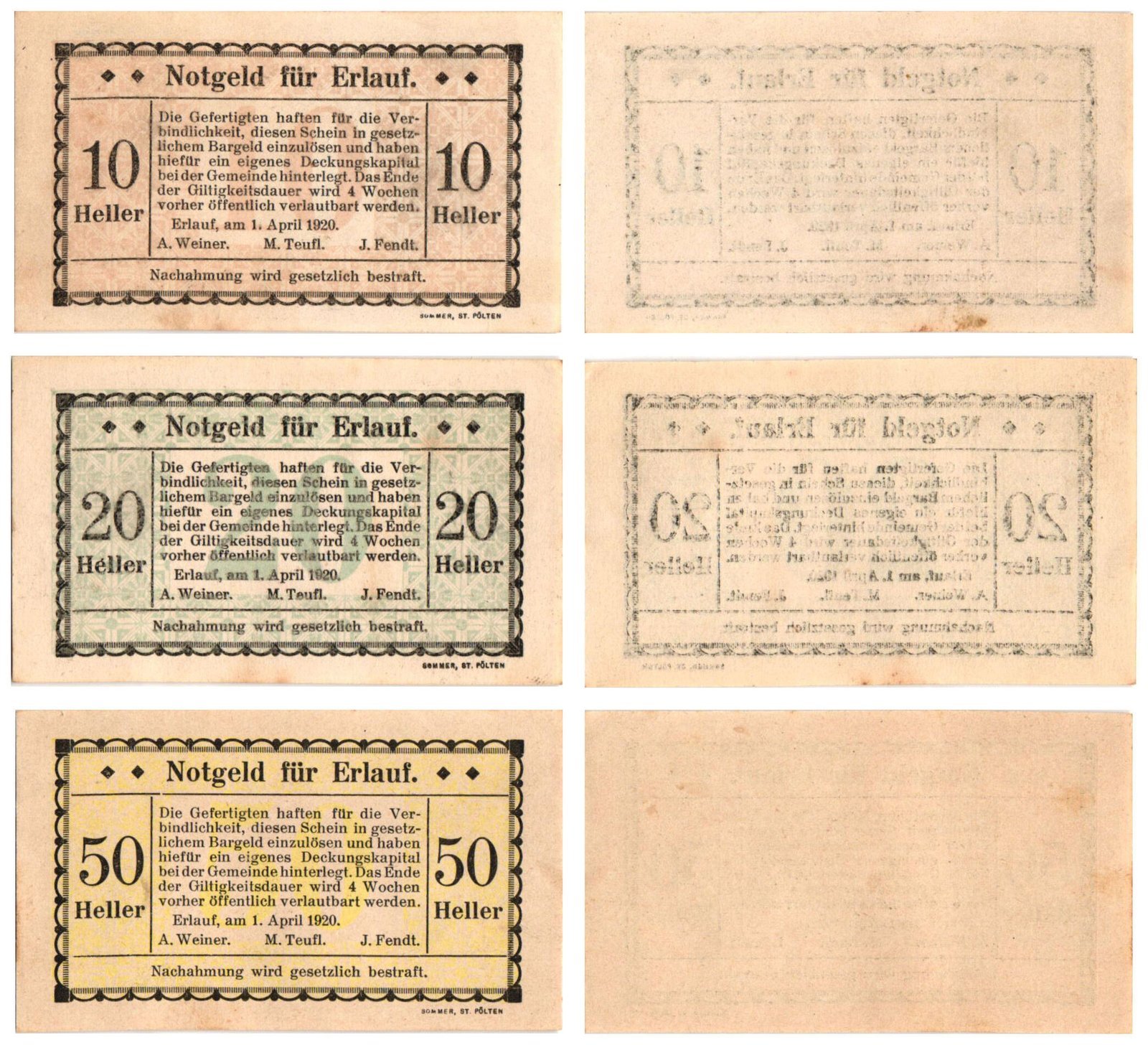 AUSTRIA Erlauf 1920 local banknotes lot / Notgeld / 3 pcs. UNC-