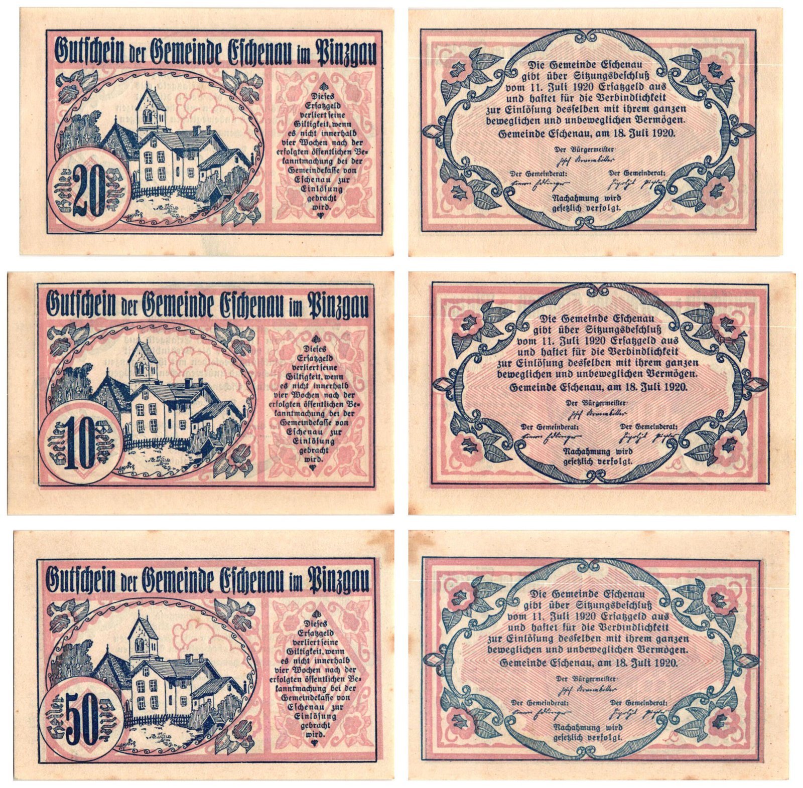 AUSTRIA Eschenau (Salzburg) 1920 local banknotes lot / Notgeld / 3 pcs. VF