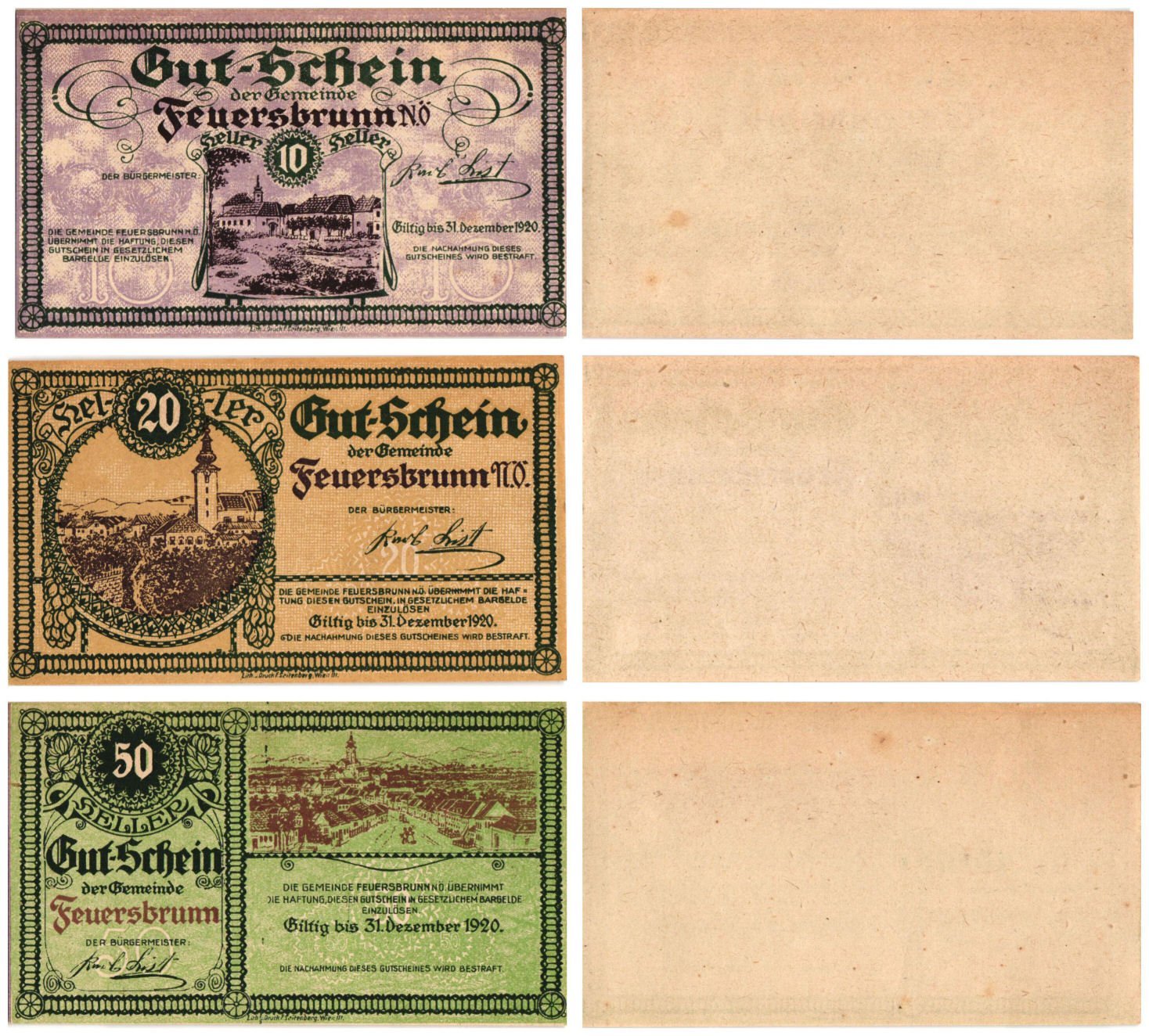 AUSTRIA Feuersbrunn 1920 local banknotes lot / Notgeld / 3 pcs. UNC-