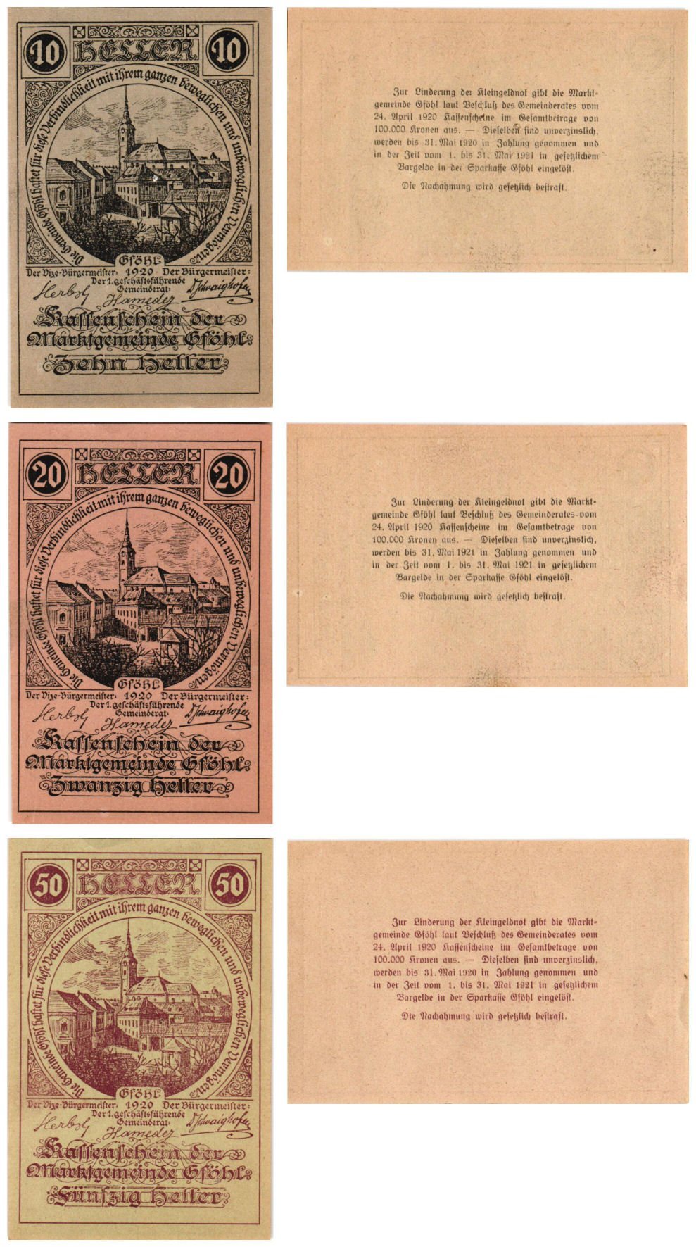 AUSTRIA Gföhl 1920 local banknotes lot / Notgeld / 3 pcs. UNC