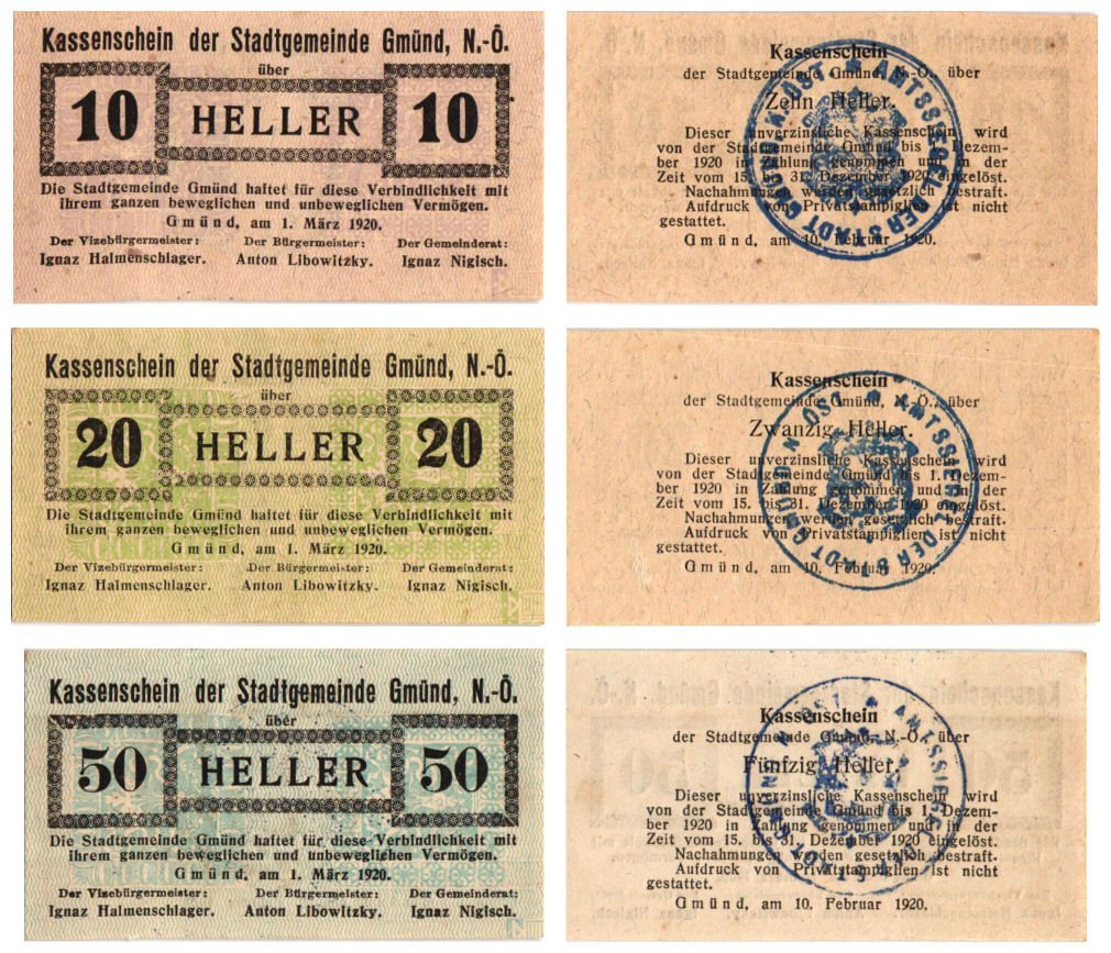 AUSTRIA Gmünd 1920 local banknotes lot / Notgeld / 3 pcs. UNC