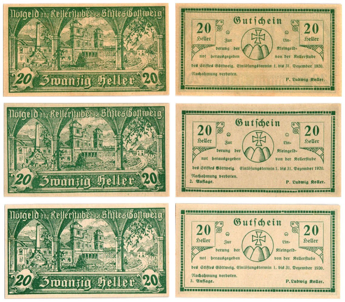 AUSTRIA Göttweig 1920 local banknotes lot / Notgeld / 3 pcs. UNC