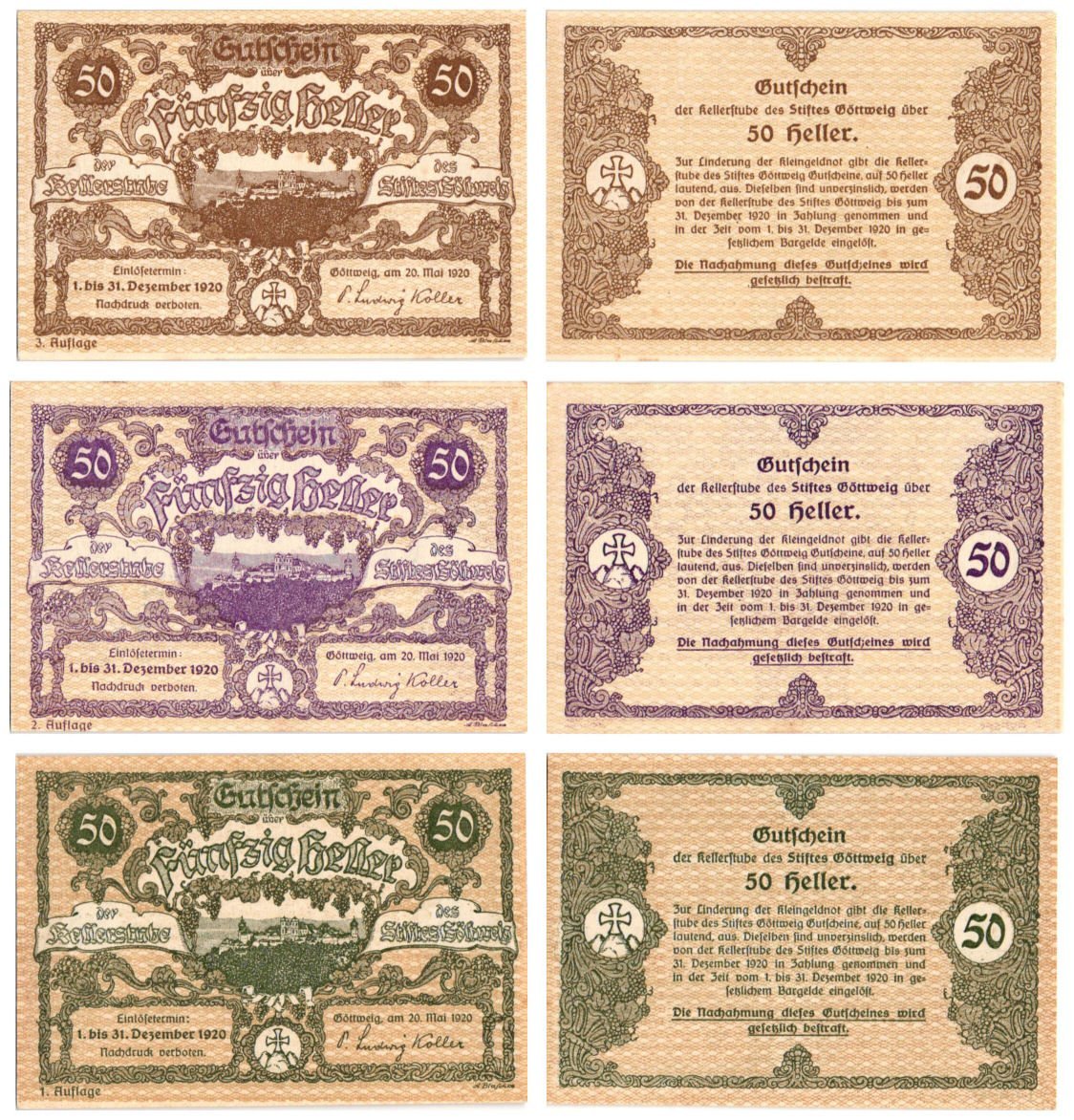 AUSTRIA Göttweig Abbey 1920 local banknotes lot / Notgeld / 3 pcs. UNC