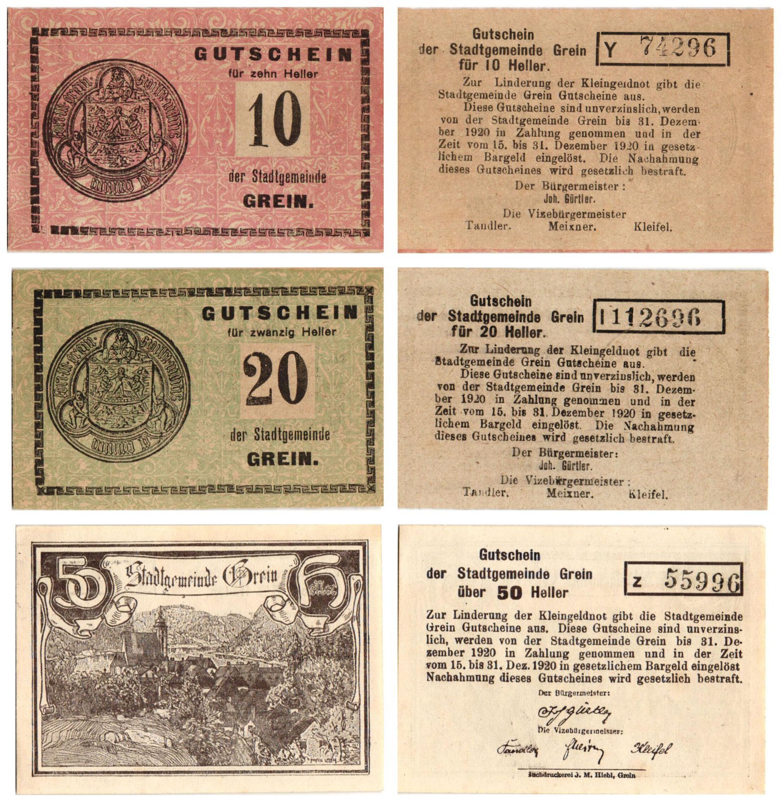 AUSTRIA Grein 1920 local banknotes lot / Notgeld / 3 pcs. UNC