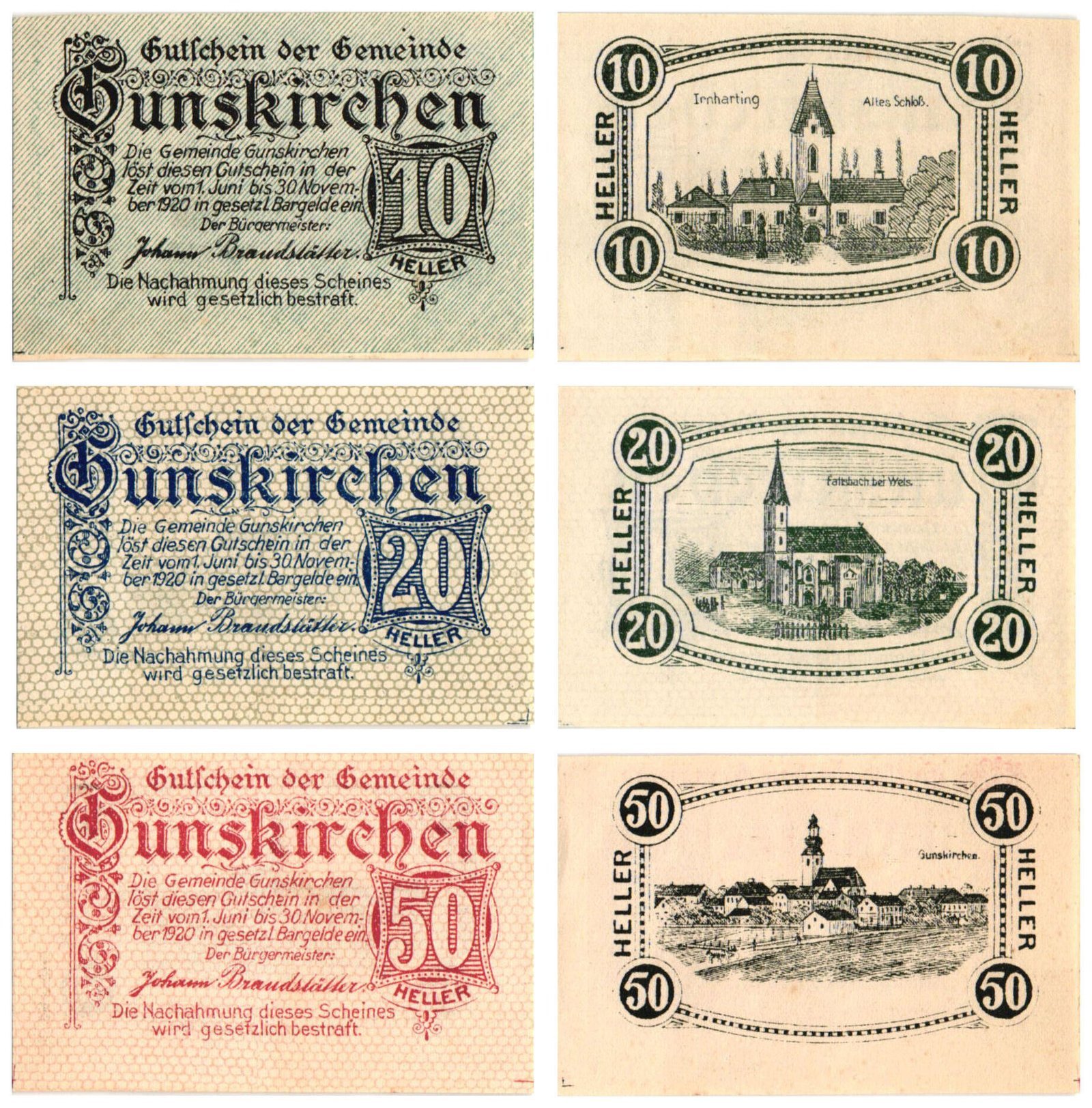 AUSTRIA Gunskirchen 1920 local banknotes lot / Notgeld / 3 pcs. UNC-