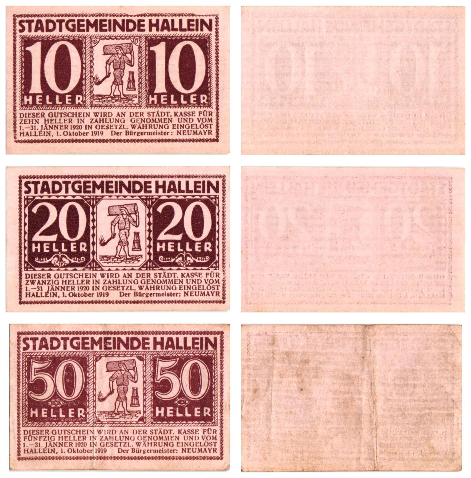 AUSTRIA Hallein 1919 local banknotes lot / Notgeld / 3 pcs. VF
