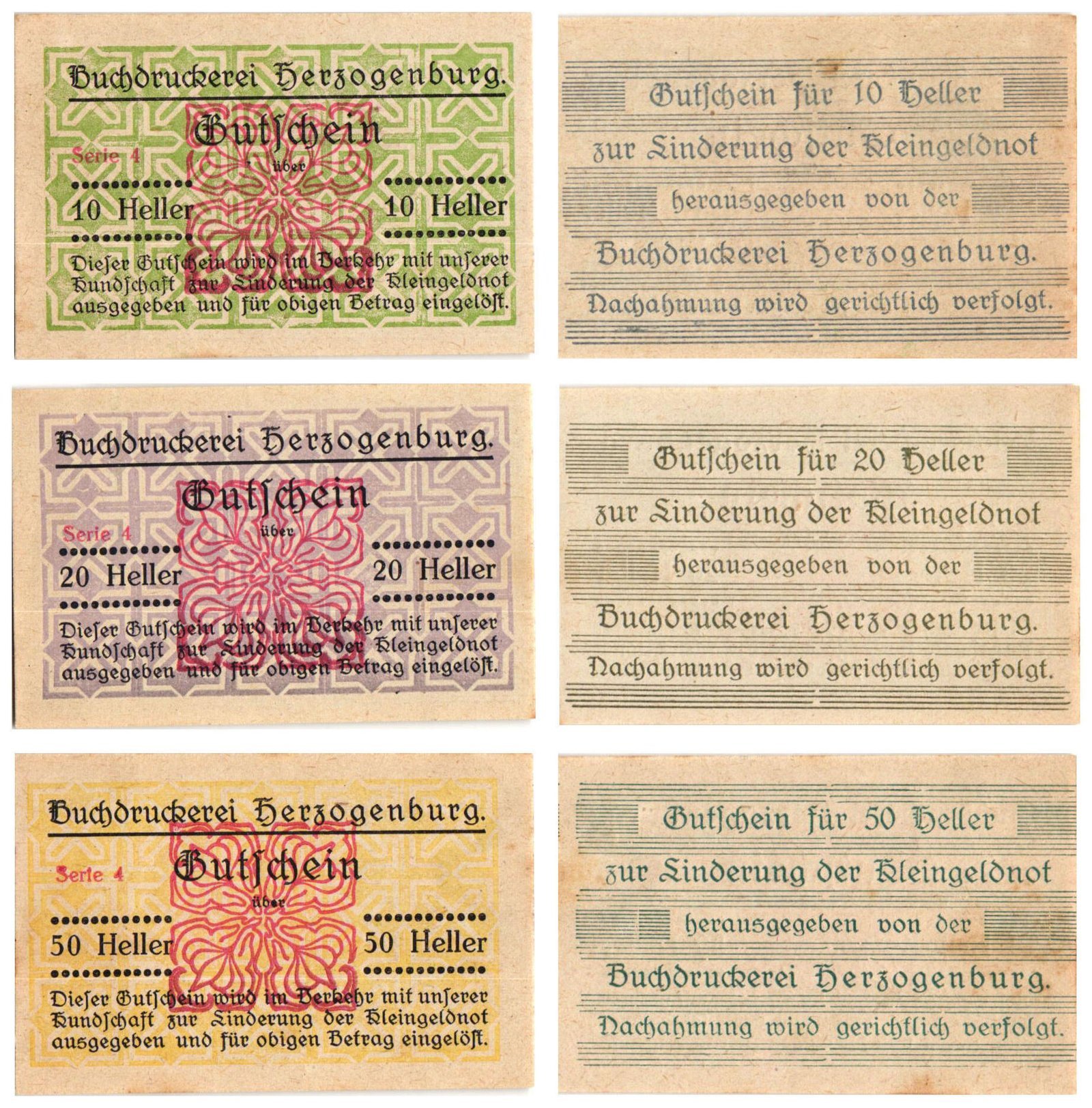 AUSTRIA Herzogenburg (Serie 4) 1920 local banknotes lot / Notgeld / 3 pcs. UNC-