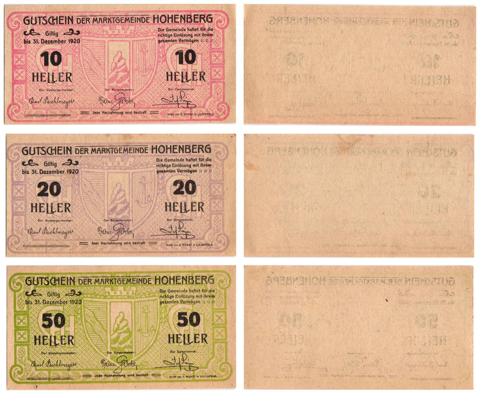 AUSTRIA Hohenberg 1920 local banknotes lot / Notgeld / 3 pcs. UNC