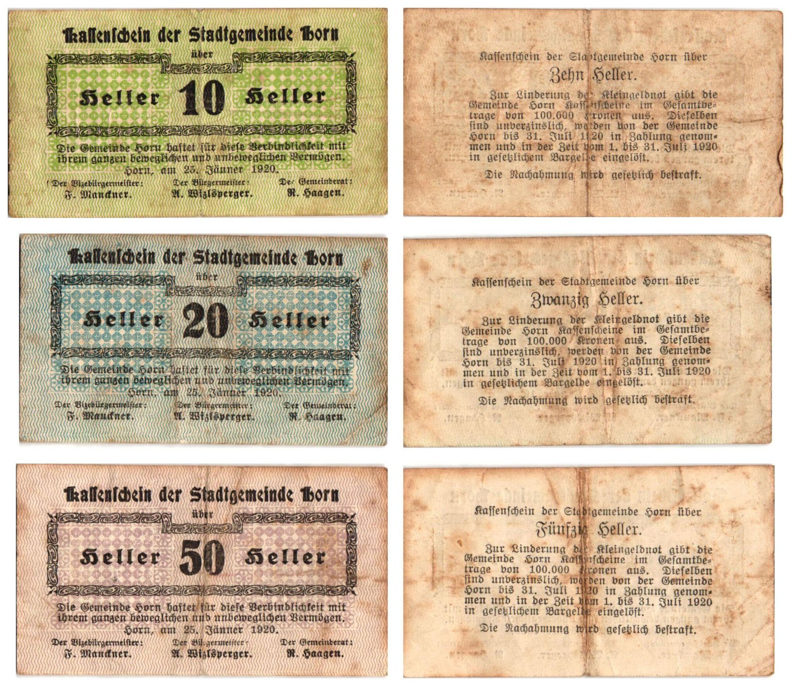 AUSTRIA Horn 1920 local banknotes lot / Notgeld / 3 pcs. F+