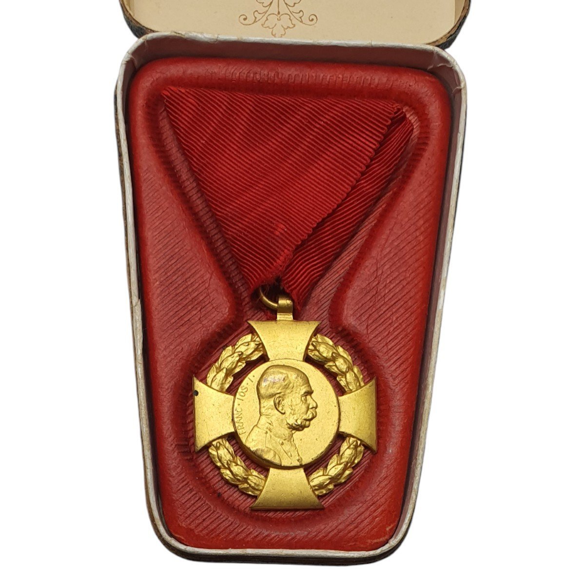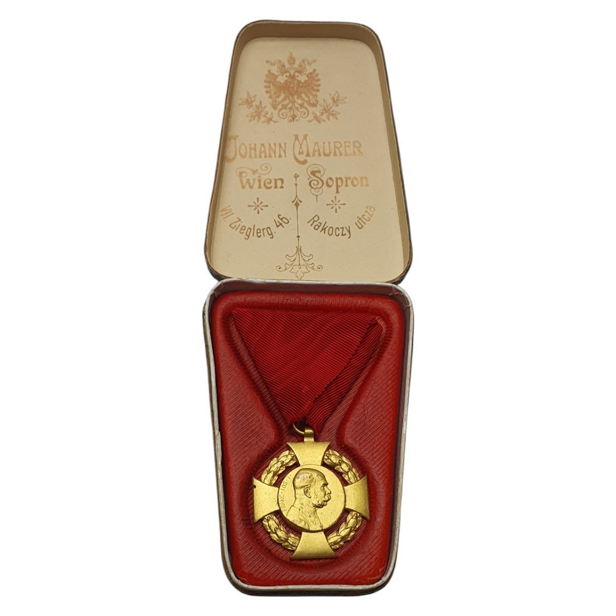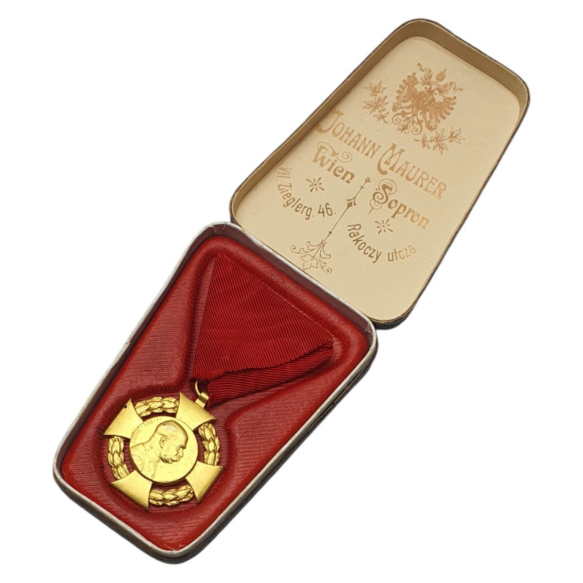 AUSTRIA-HUNGARY Jubilee Cross 1908 with Civilian ribbon / Manufacturer Johann Maurer, Vienna / in case