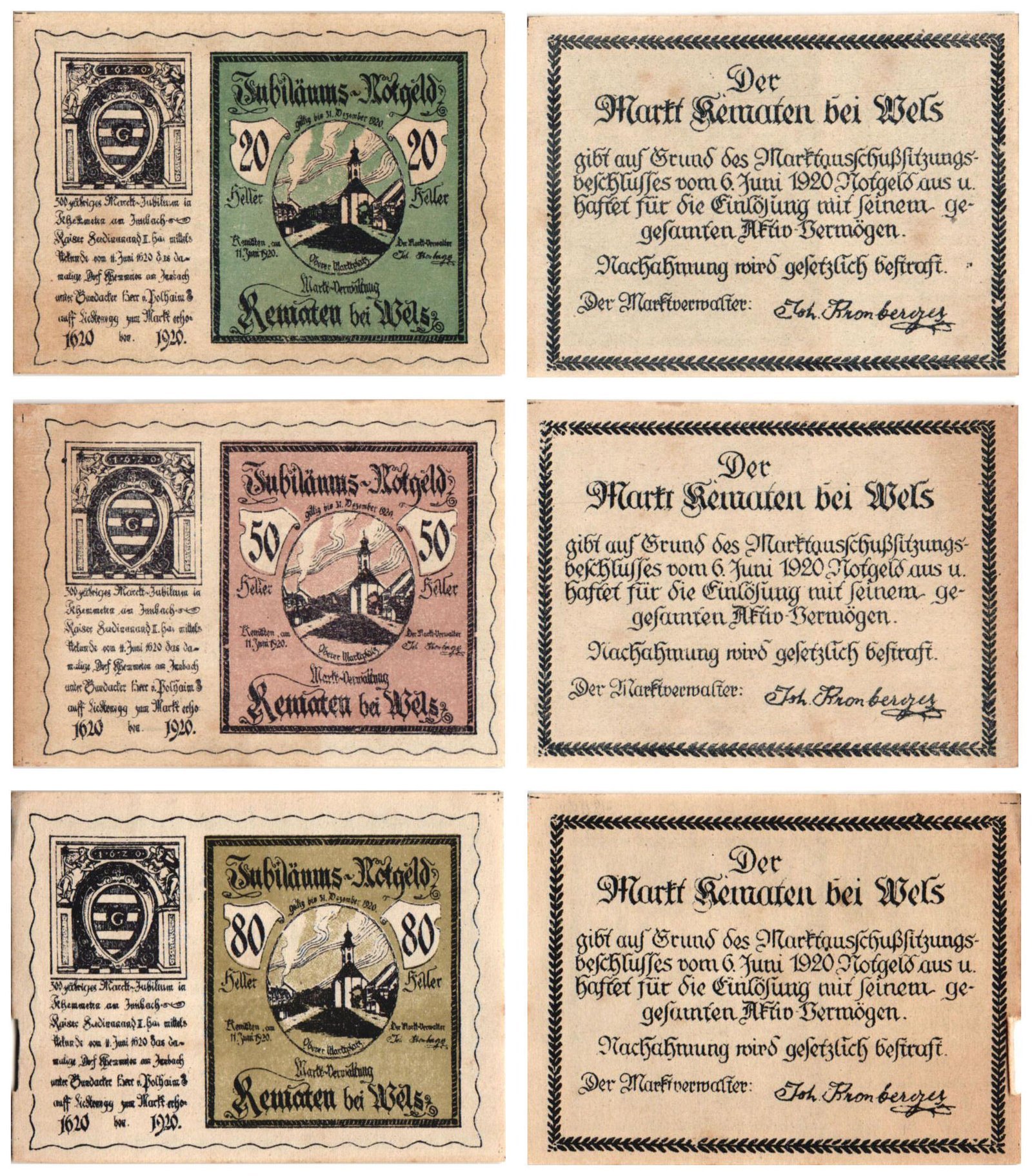AUSTRIA Kematen bei Wels 1920 local banknotes lot / Notgeld / 3 pcs. UNC