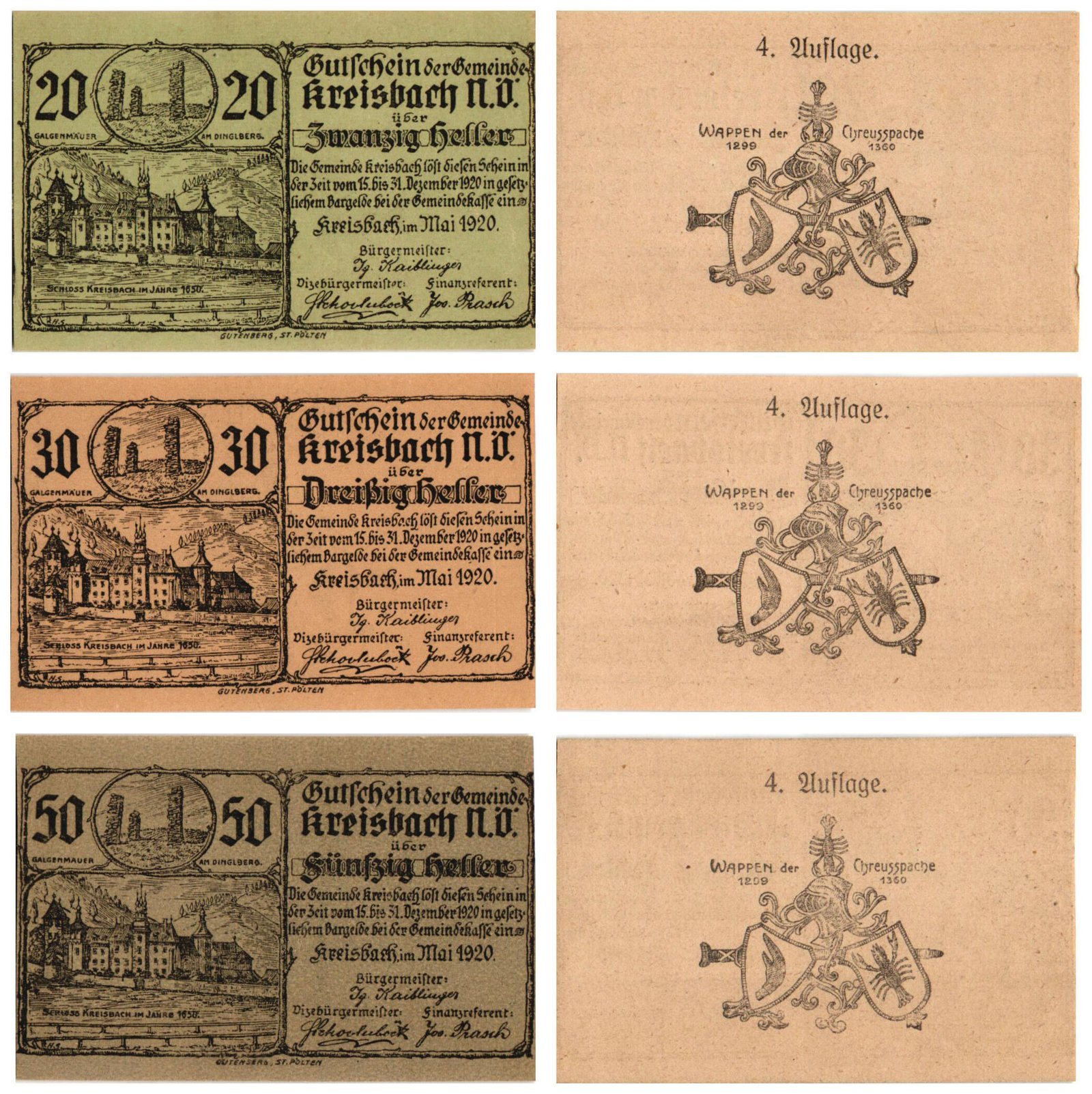 AUSTRIA Kreisbach (4. Auflage) 1920 local banknotes lot / Notgeld / 3 pcs. UNC