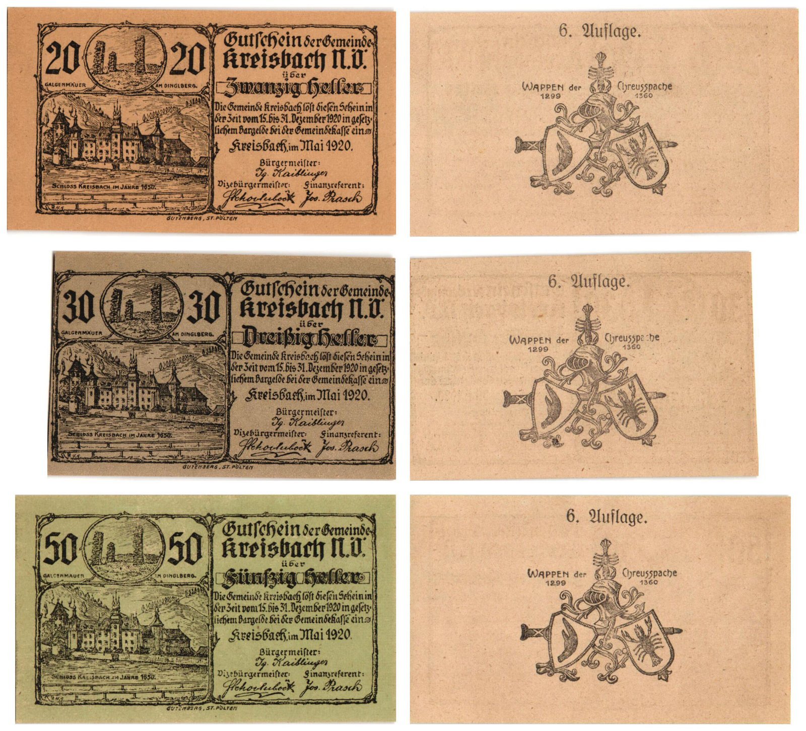 AUSTRIA Kreisbach (6. Auflage) 1920 local banknotes lot / Notgeld / 3 pcs. UNC