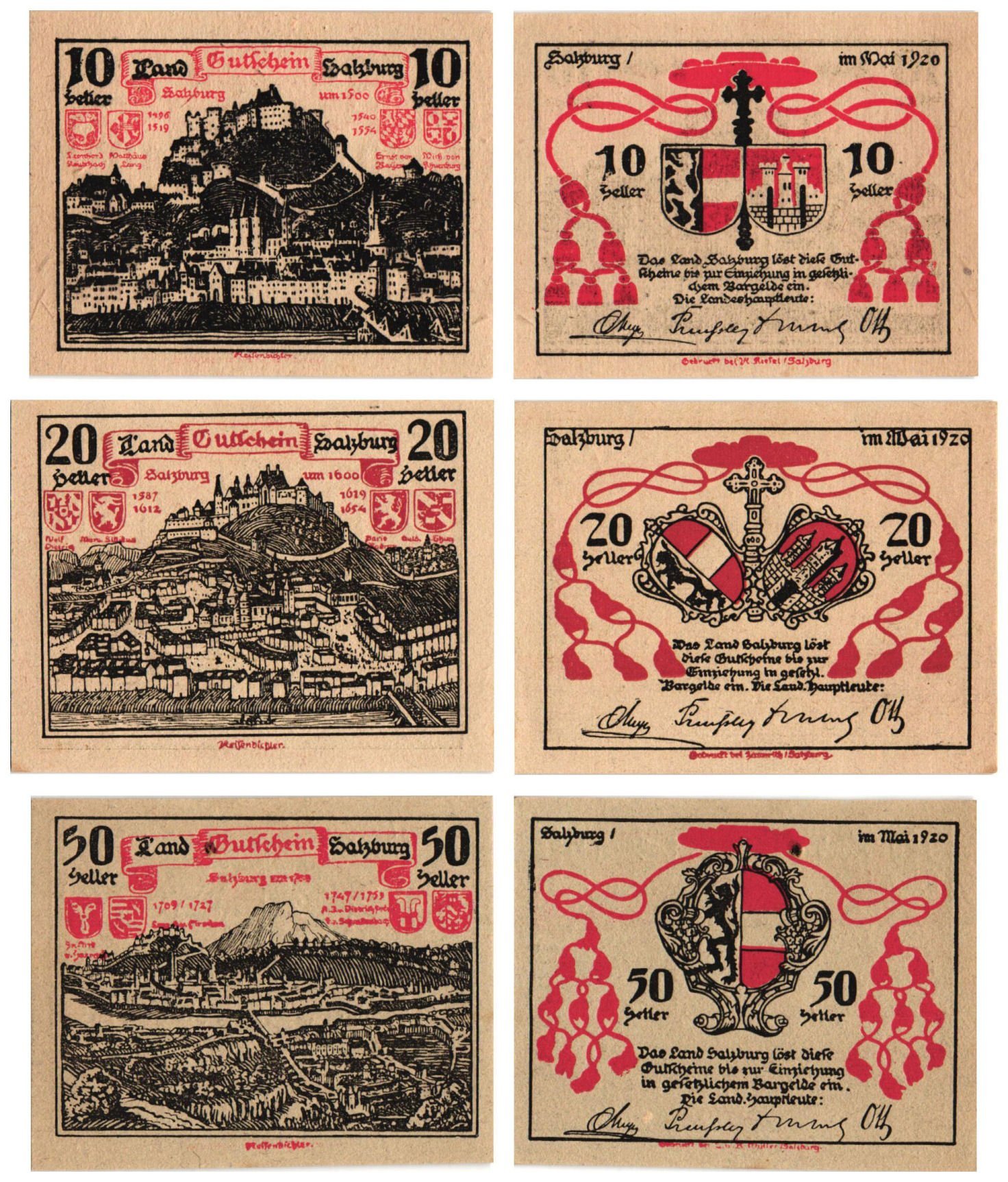 AUSTRIA Land Salzburg 1920 local banknotes lot / Notgeld / 3 pcs. UNC