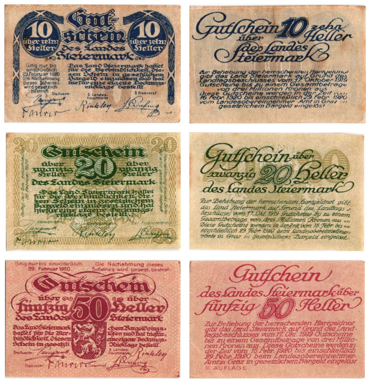 AUSTRIA Land Steiermark 1920 local banknotes lot / Notgeld / 3 pcs. XF