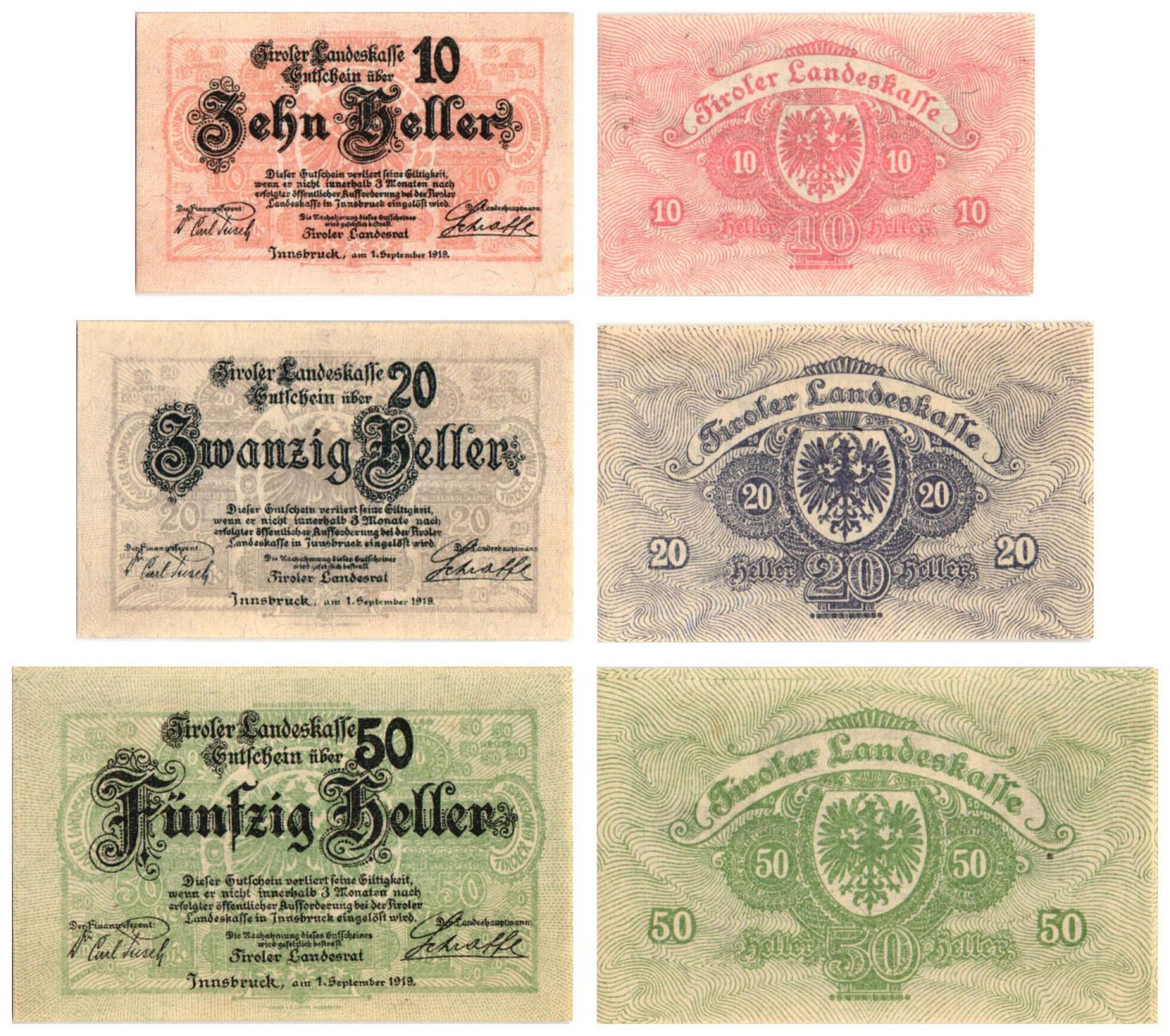 AUSTRIA Land Tirol 1919 local banknotes lot / Notgeld / 3 pcs. UNC