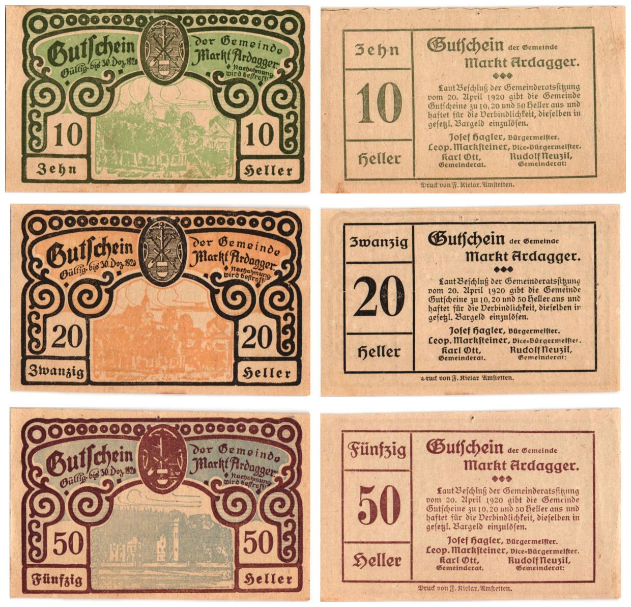 AUSTRIA Markt Ardagger 1920 local banknotes lot / Notgeld / 3 pcs. XF