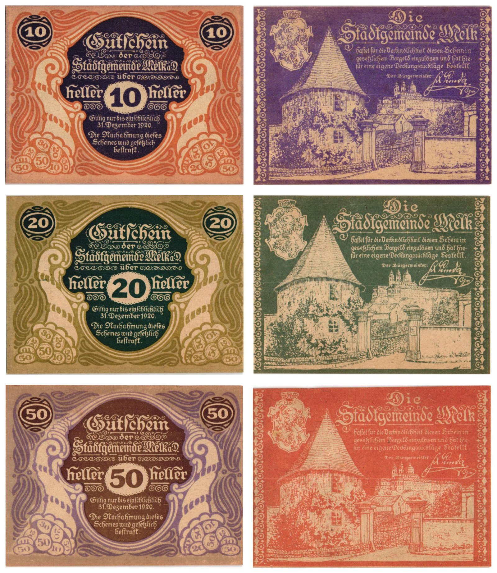 AUSTRIA Melk an der Donau 1920 local banknotes lot / Notgeld / 3 pcs. UNC