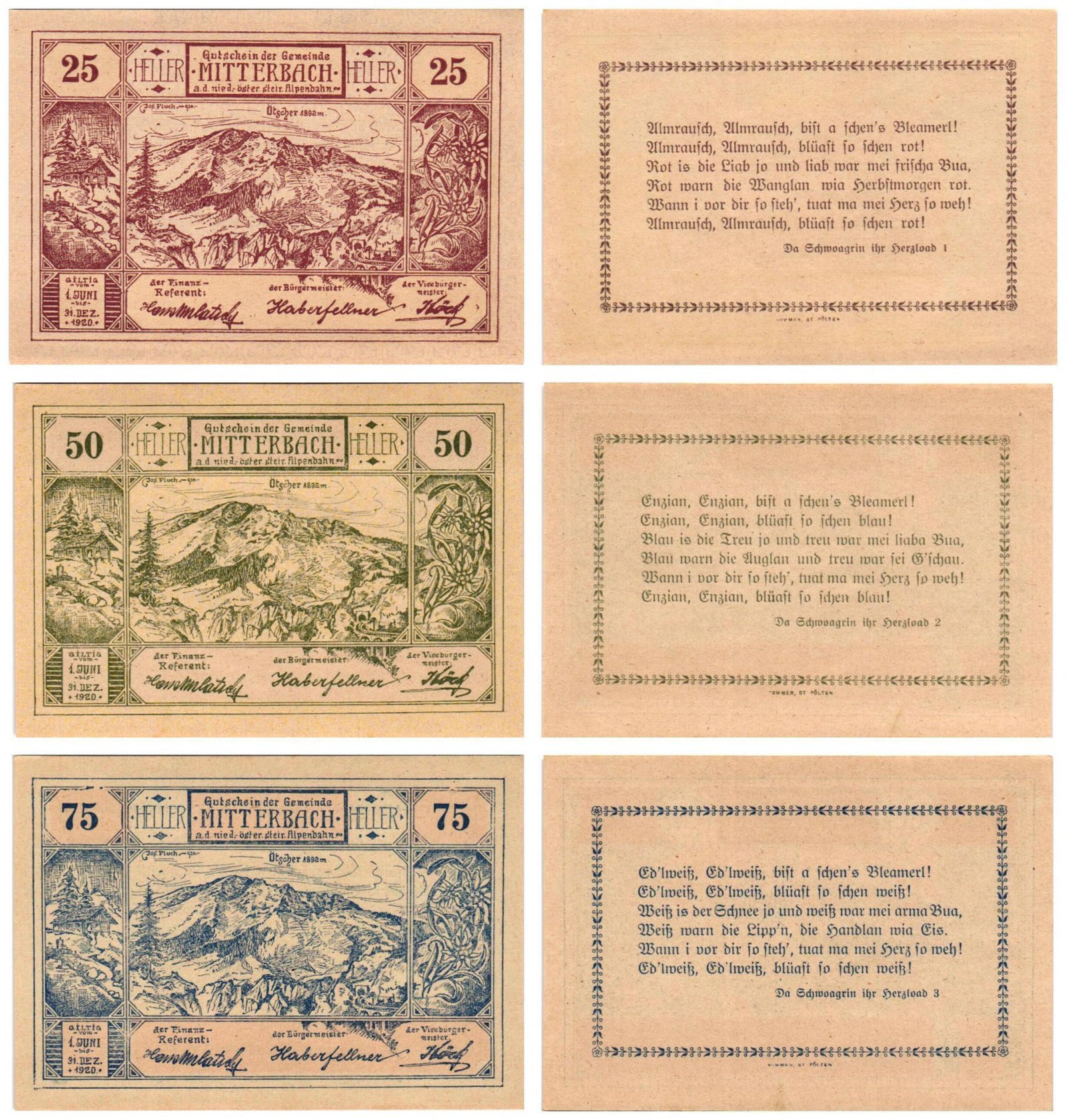 AUSTRIA Mitterbach 1920 local banknotes lot / Notgeld / 3 pcs. UNC