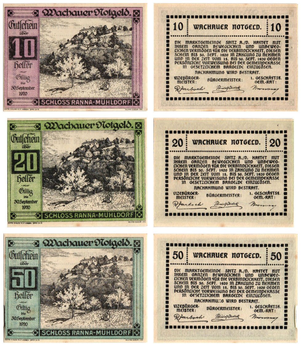 AUSTRIA Mühldorf – Ranna 1920 local banknotes lot / Notgeld / 3 pcs. UNC-