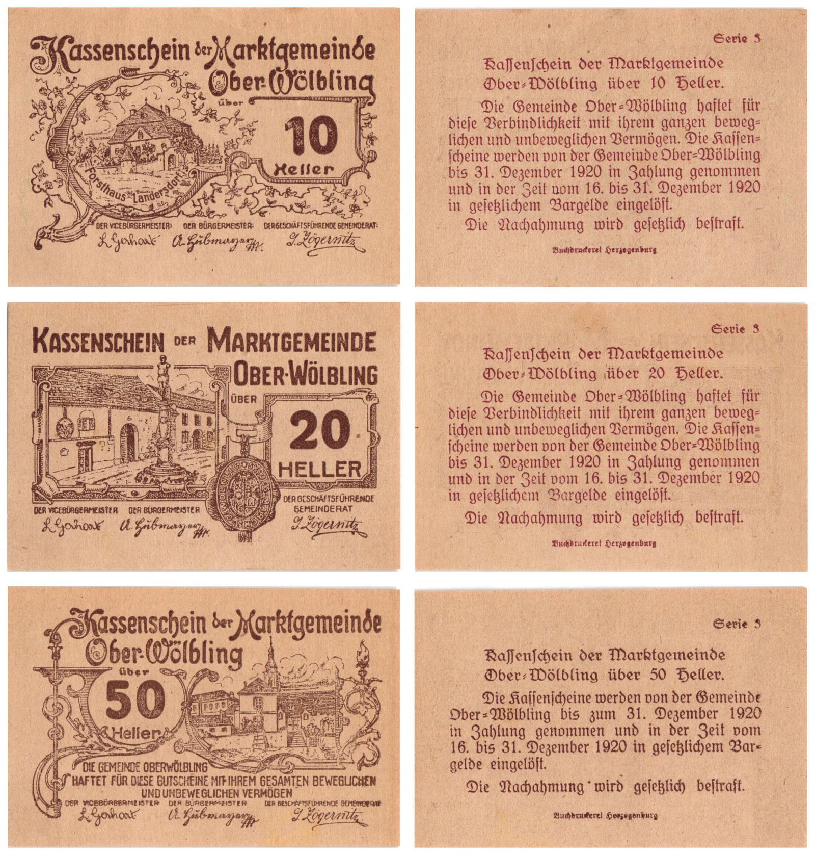 AUSTRIA Ober-Wölbling (Series 3) 1920 local banknotes lot / Notgeld / 3 pcs. UNC