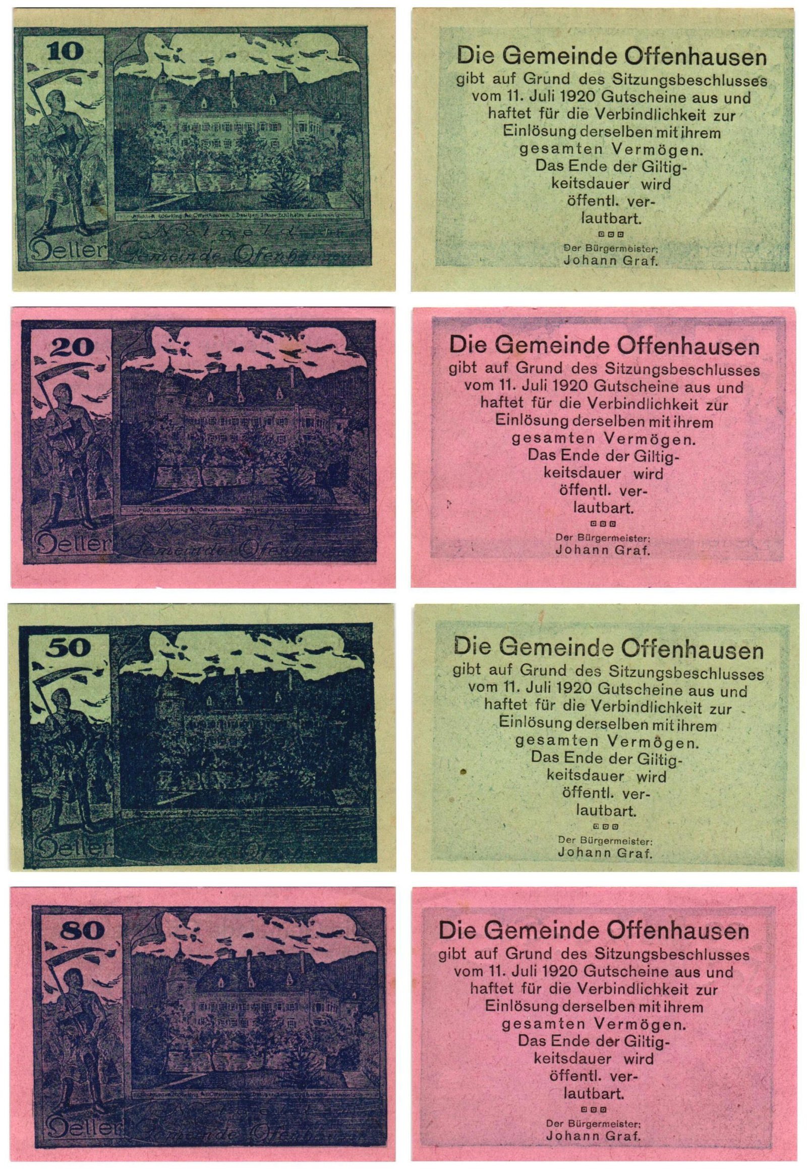 AUSTRIA Offenhausen (Series 2) 1920 local banknotes lot / Notgeld / 4 pcs. UNC