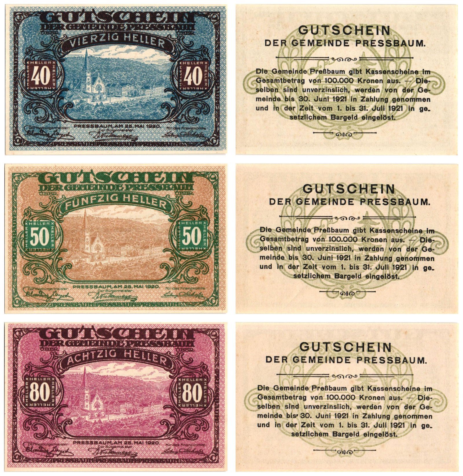 AUSTRIA Pressbaum 1920 local banknotes lot / Notgeld / 3 pcs. UNC