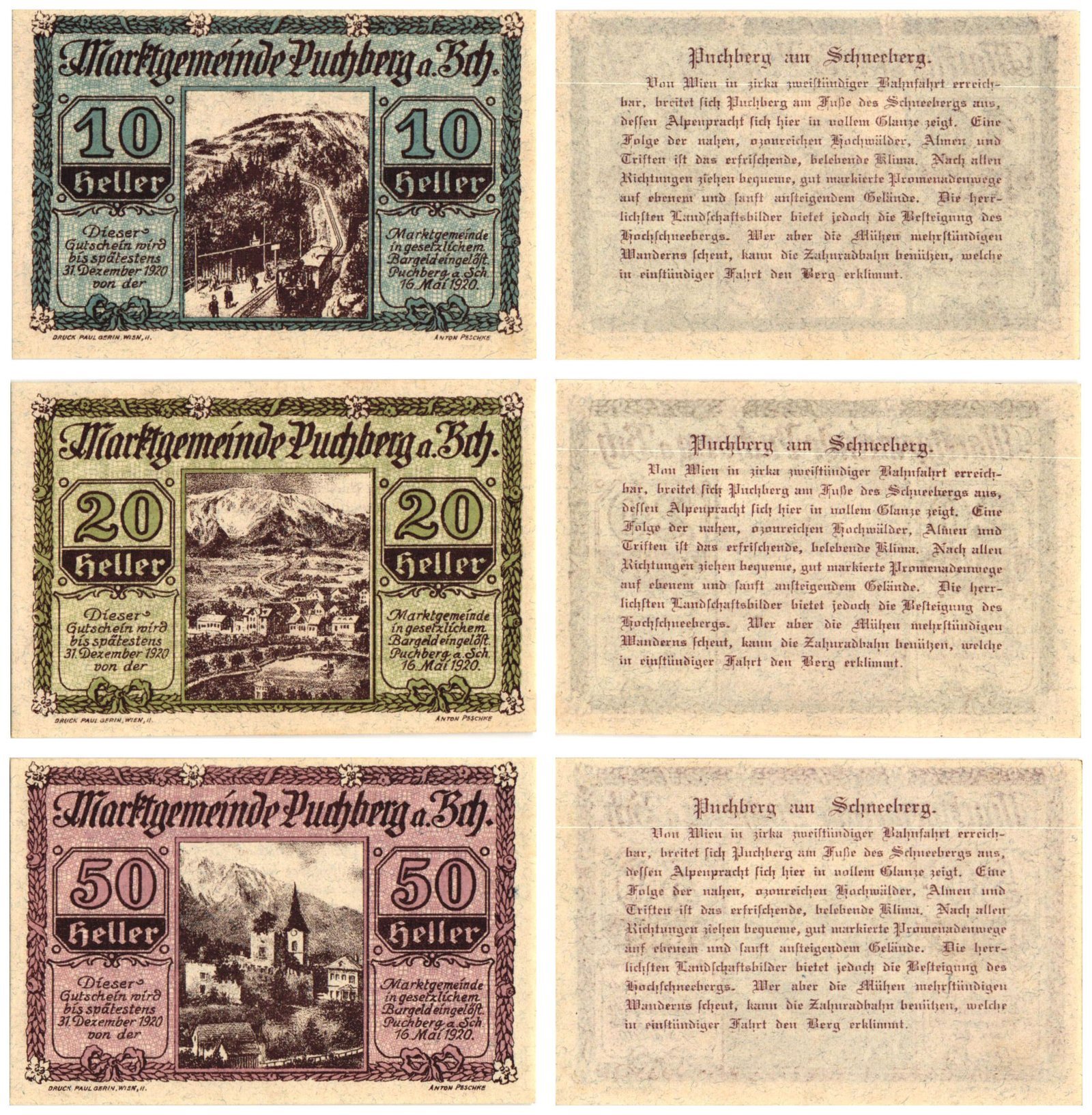 AUSTRIA Puchberg am Schneeberg 1920 local banknotes lot / Notgeld / 3 pcs. UNC