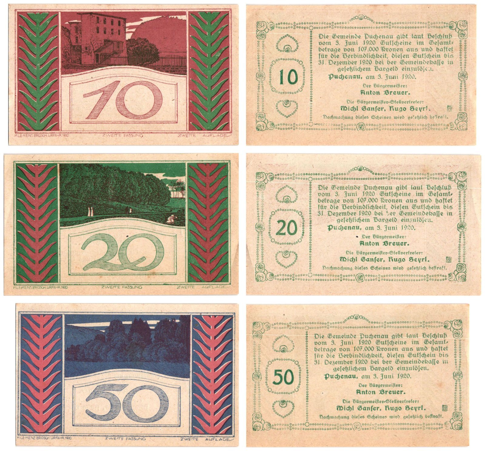 AUSTRIA Puchenau 1920 local banknotes lot / Notgeld / 3 pcs. XF