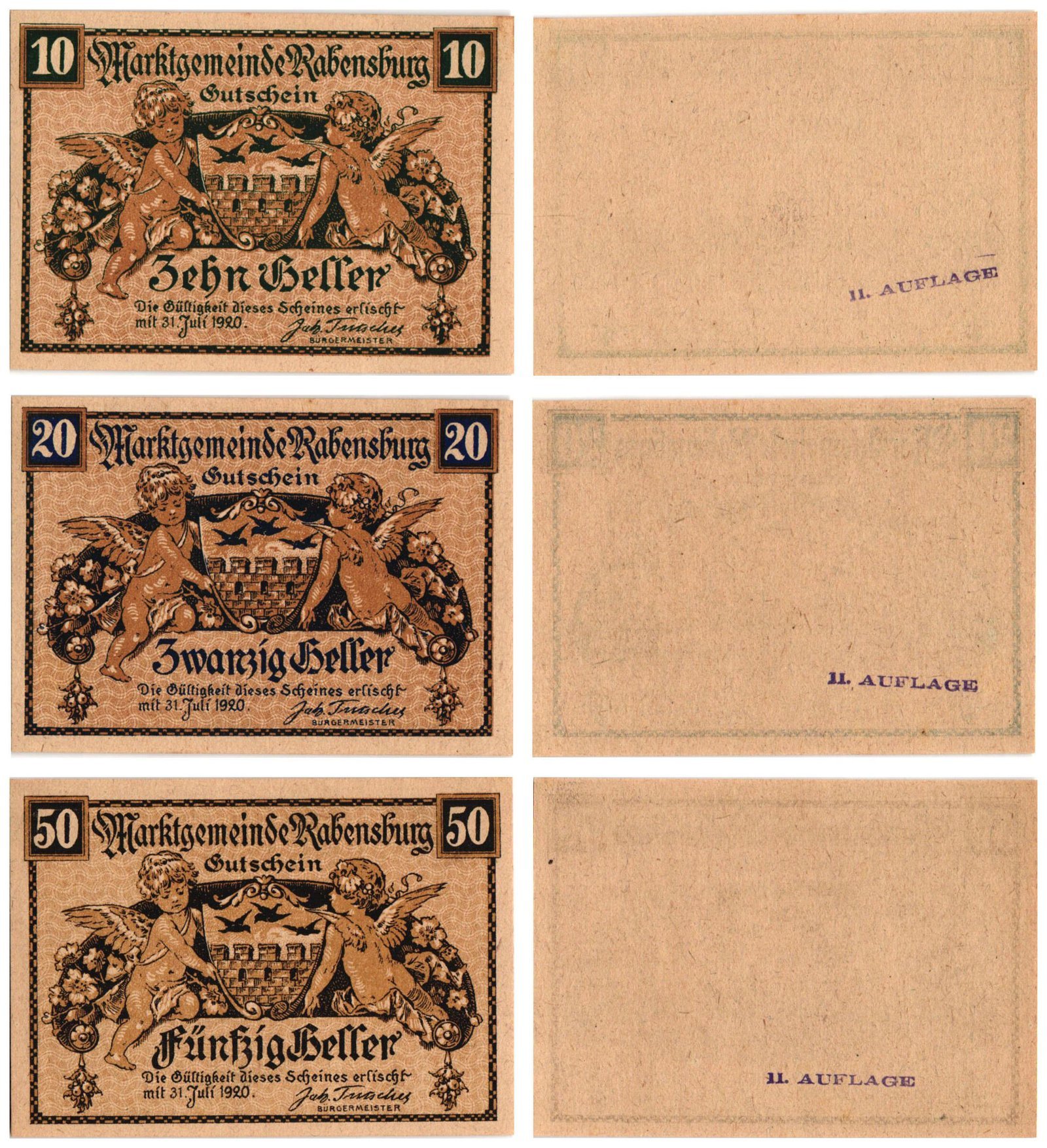 AUSTRIA Rabensburg (II. Auflage) 1920 local banknotes lot / Notgeld / 3 pcs. UNC